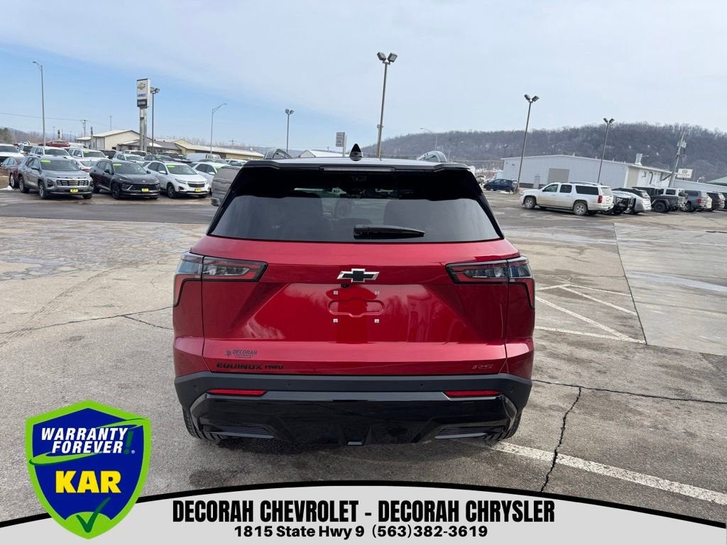 Radiant Red Tintcoat 2026 Chevrolet Equinox RS AWD 8-Speed Automatic 1.5L DOHC This Chevrolet Equinox comes with Warranty Forever. This EXCLUSIVE Unlimited Mileage, Unlimited Time,, No Deductible Powertrain Warranty allows you to buy with Confidence and Peace of Mind, Other key features include, * Adaptive Cruise Control, Android Auto, Apple CarPlay, Bluetooth®, Hands-Free, 360 Surround Camera, Cooled Seats, Heated Seats, Heated Steering Wheel, Leather Seats, LED Headlights, Power Liftgate, Remote Start, All-Weather Floor Mats, Cargo Mat, Convenience Package III, Front Fog Lamps, Front Passenger 2-Way Power Lumbar Seat Adjuster, Front Passenger 8-Way Power Seat Adjuster, HD Surround Vision, Heated Rear Outboard Seating Positions, Interior Protection Package, Memory Settings, Preferred Equipment Group 2RS, Rear Pedestrian Alert, Safety and Technology Package, Second Row All-Weather Mat, Traffic Sign Recognition, Ventilated Driver Seat, Ventilated Front Passenger Seat.We offer you MARKET DRIVEN PRICING. What does that mean, we shop the market so you don't have to and provide you with the best value in the market . Call to now to check availability. Recent Arrival! 25/29 City/Highway MPGKAR Auto Group offers FREE loaner service, CERTIFIED sales and service personnel. Over 300 units available.*