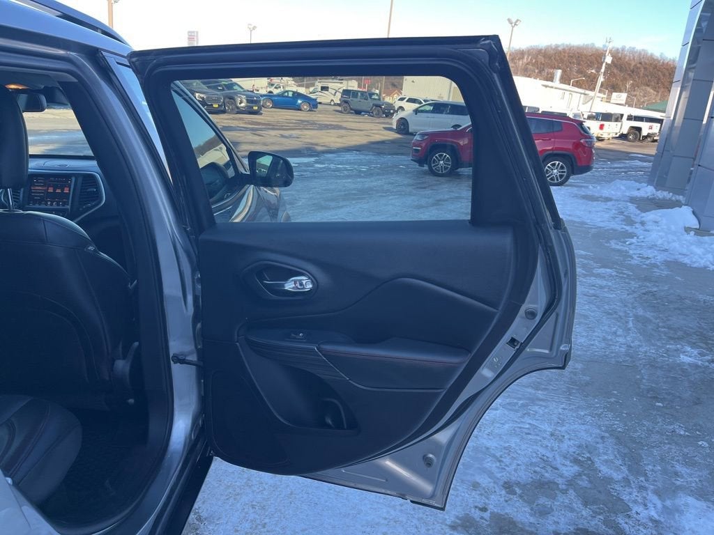 Clean CARFAX. This Jeep Cherokee is well equipped and includes the following features and benefits, Select Shield Warranty Covers your powertrain for 3 months or 3,000 miles., 17 x 7.5 Aluminum Wheels, 7 & 4 Pin Wiring Harness, Accessory Switch Bank Module, Adaptive Cruise Control w/Stop & Go, Advanced Brake Assist, Air Conditioning ATC w/Dual Zone Control, Auto High Beam Headlamp Control, Auxiliary Transmission Oil Cooler, Blind Spot & Cross Path Detection, Brake assist, Class III Receiver Hitch, Electronic Stability Control, Engine Block Heater, Exterior Mirrors Courtesy Lamps, Exterior Mirrors w/Heating Element, Exterior Mirrors w/Memory, Exterior Mirrors w/Supplemental Signals, Front fog lights, Full Speed FWD Collision Warn Plus, Fully automatic headlights, Heated Front Seats, Heated Steering Wheel, High intensity discharge headlights: Bi-Xenon, Humidity Sensor, Integrated Voice Command w/Bluetooth®, Jeep Rack Off Road Accessory Kit, Lane Departure Warning Plus, Off Road Suspension, Parallel & Perp Park Assist w/Stop, ParkSense Rear Park Assist System, Passive Entry/Keyless Go, Power 4-Way Driver Lumbar Adjust, Power 8-Way Driver Seat, Power Liftgate, Power Multi-Function Fold Away Mirrors, Premium Air Filter, Quick Order Package 27L L Plus, Radio: Uconnect 3C w/8.4 Display, Radio/Driver Seat/Exterior Mirrors Memory, Rain Sensitive Windshield Wipers, Rear-View Auto-Dimming Mirror w/Microphone, Remote Proximity Keyless Entry, Remote Start System, SafetyTec, Security Alarm, Technology Group, Tonneau Cover, Trailer Tow Group, Trailer Tow Wiring Harness, Uconnect Access, Universal Garage Door Opener, Ventilated Front Seats, Windshield Wiper De-Icer.