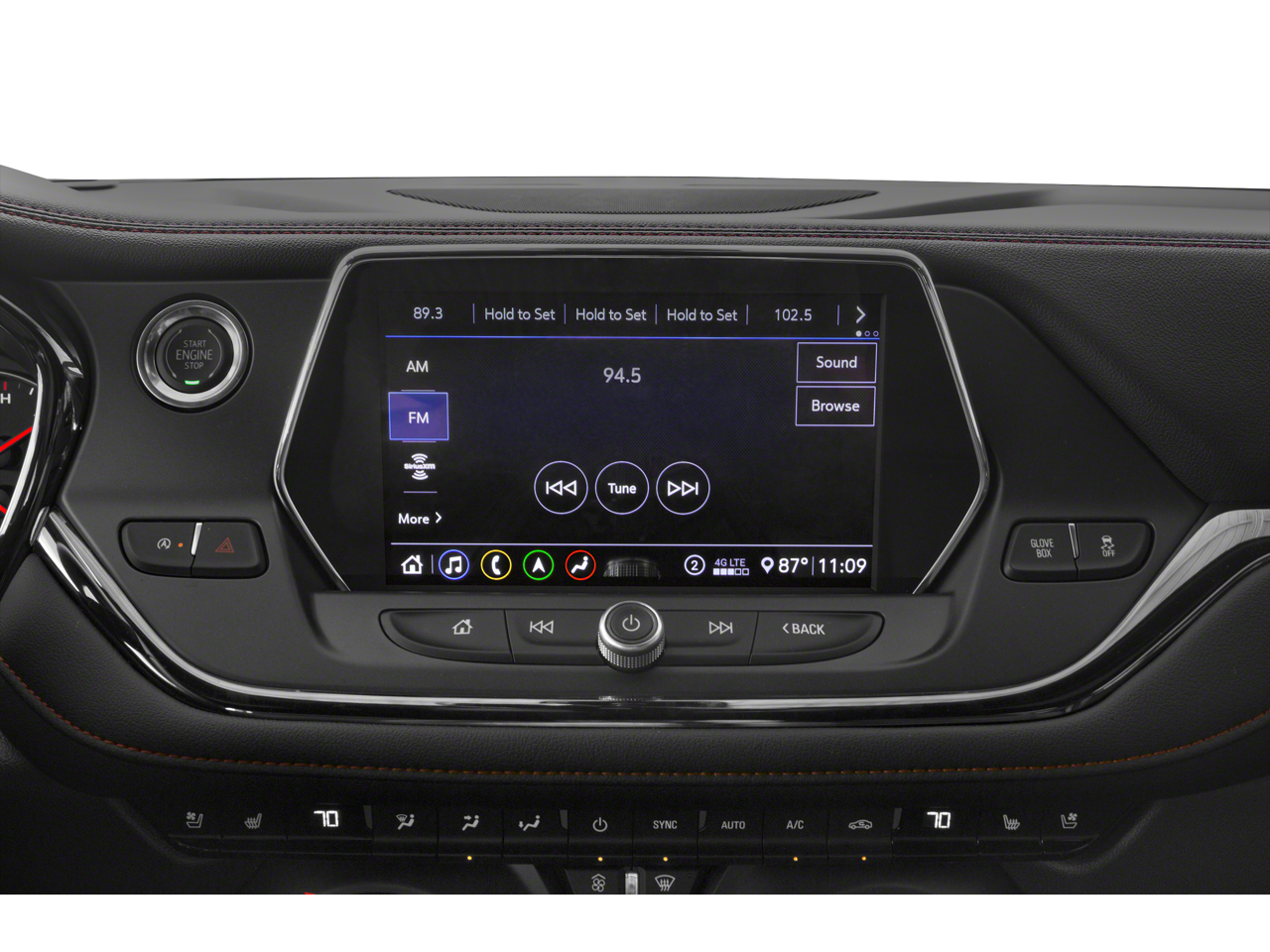 - Audio system, Chevrolet Infotainment 3 Plus system with connected Navigation, 8" diagonal HD color touchscreen, AM/FM stereo, Bluetooth® audio streaming for 2 active devices, Apple CarPlay and Android Auto capable, enhanced voice recognition, in-vehicle apps, cloud connected personalization for select infotainment and vehicle settings. Subscription required for enhanced and connected services after trial period.