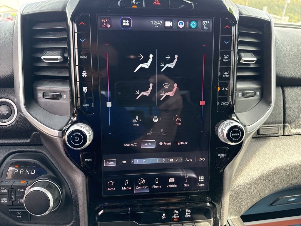 CARFAX One-Owner. This Ram 1500 is well equipped and includes the following features and benefits, Select Shield Warranty Covers your powertrain for 3 months or 3,000 miles., Other key features include, *Android Auto, Apple CarPlay, Backup Camera, Blind-Spot Monitors, Bluetooth®, Hands-Free, Heated Seats, Heated Steering Wheel, Remote Start, Short Box/Short Bed, Tow Hitch / Trailer Hitch, 115V Auxiliary Power Outlet, 115V Auxiliary Rear Power Outlet, 12 Touchscreen Display, 2nd Row In Floor Storage Bins, 400W Inverter, 4G LTE Wi-Fi Hot Spot, 9 Amplified Speakers w/Subwoofer, Air Conditioning ATC w/Dual Zone Control, Apple CarPlay, Auto Power-Folding Mirrors, Auto-Dimming Exterior Driver Mirror, Auto-Dimming Rear-View Mirror, Big Horn Level 2 Equipment Group, Black Exterior Mirrors, Black Premium Power Mirrors, Cluster 7.0 TFT Color Display, Configurable Drive Mode, Connected Travel & Traffic Services, Connectivity - US/Canada, Convex Wide-Angle Exterior Mirror Insert, Exterior Mirrors Courtesy Lamps, Exterior Mirrors w/Heating Element, Exterior Mirrors w/Supplemental Signals, Glove Box Lamp, Google Android Auto, GPS Antenna Input, GPS Navigation, HD Radio, Heated Front Seats, Heated Steering Wheel, Integrated Voice Command w/Bluetooth®, Leather Wrapped Steering Wheel, LED Dome Lamp w/On/Off Switch, LED Footwell Lighting, Media Hub w/2 Charge Only USBs, Overhead LED Lamps, Power 2-Way Driver Lumbar Adjust, Power Adjust 8-Way Driver Seat, Power Adjustable Pedals, Premium Overhead Console, Quick Order Package 21Z Big Horn, Radio: Uconnect 5 Nav w/12.0 Display, Rear Power Sliding Window, Rear Window Defroster, Remote Tailgate Release, Security Alarm, SiriusXM w/360L, Steering Wheel Mounted Audio Controls, Sun Visors w/Illuminated Vanity Mirrors, Universal Garage Door Opener, USB Host Flip.